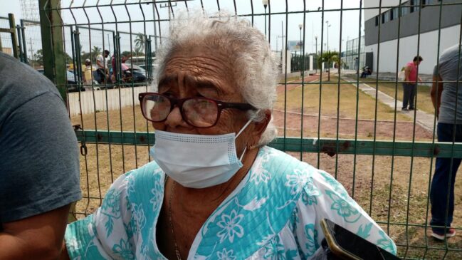Largas filas de hasta 6 cuadras tuvieron que realizar los adultos mayores en compañía de sus familiares, quienes esperaron bajo el sol el momento en que les dieron acceso a las instalaciones de la Unidad deportiva.