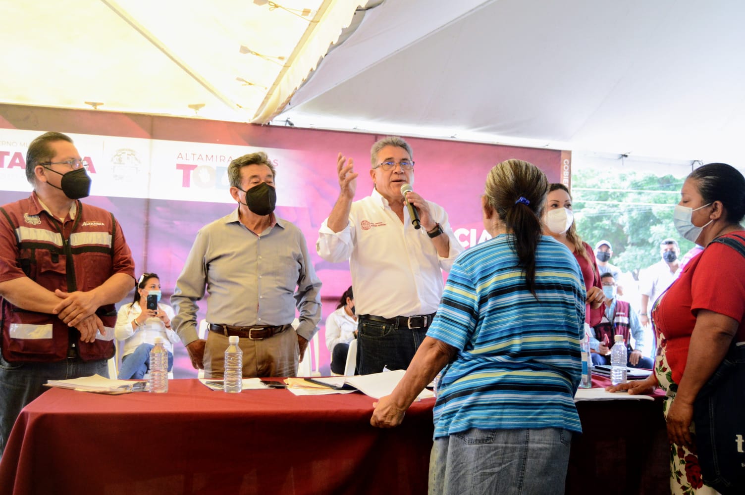 Por otro lado, solicitudes como bardas, atención y correcto suministro de agua potable, insumos de sanitización, pintarrones y sillas, tomó nota el alcalde para ser atendidos a la brevedad.