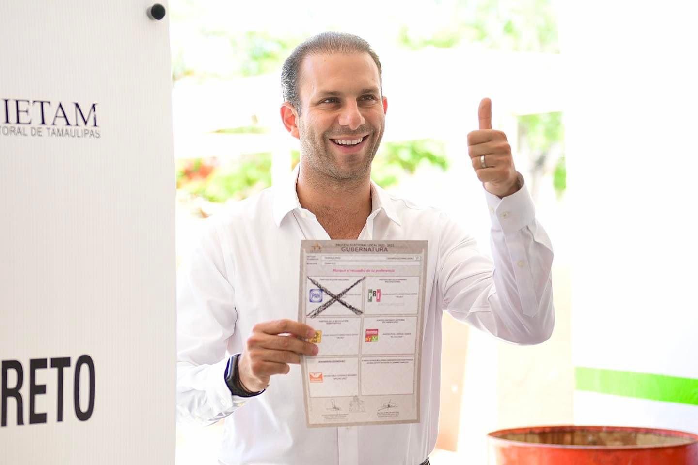 “Que para el final del día todos los que estamos en la lista nominal y tenemos este gran derecho para elegir, cumplamos con ese deber y que todos tengamos el dedo pintado”, expresó en su llamado a los y las tamaulipecas.